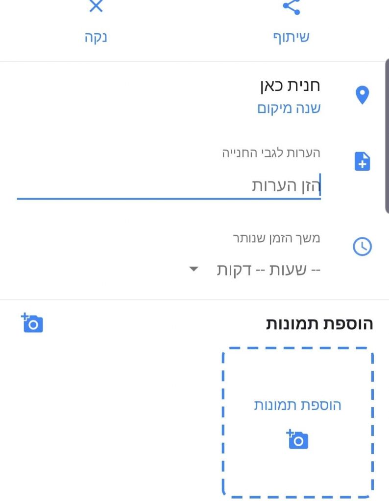 ישנה גם אפשרות לצלם את מיקום החניה, לרשום שם הערות ולהסיר או לשנות את המקום.